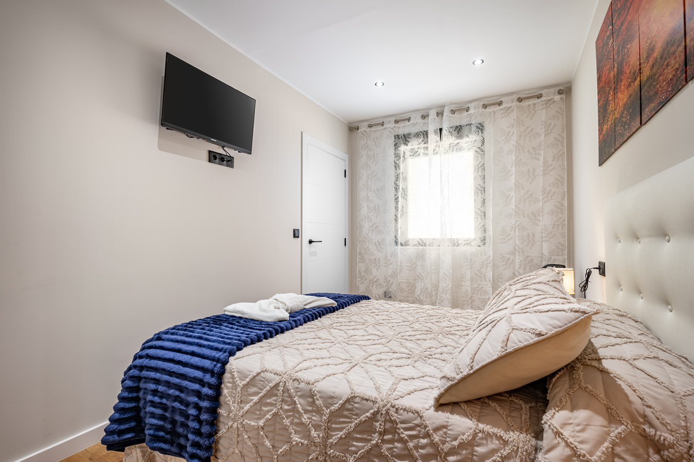 Este apartamento se encuentra en el centro de Ribadeo, muy cerca de Plaza España. Cuenta con 2 habitaciones: una habitación con cama de matrimonio de 1’35 y una habitación de una cama individual de 0’90; además cuenta con una sala de estar y una cocina equipada con todo lo necesario para que tengas una excelente estancia.