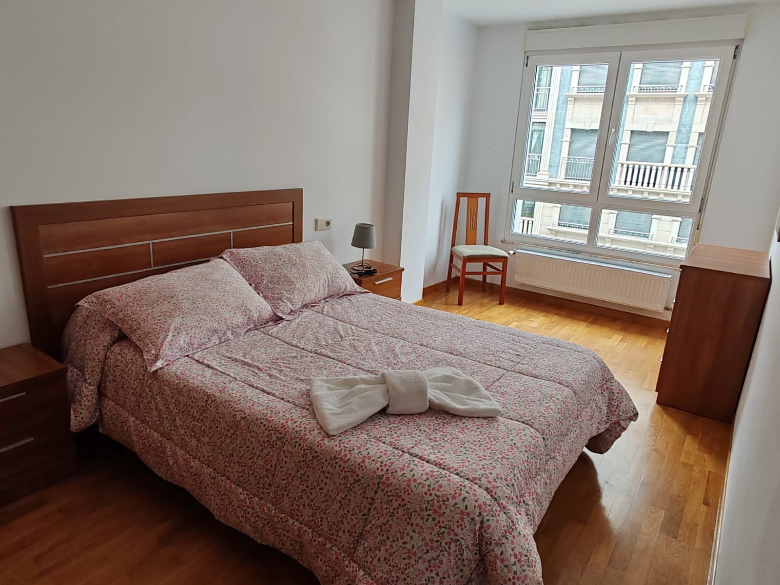 Este apartamento se encuentra en la Avda. Rosalía de Castro, Portal Nº16, cerca del centro de Ribadeo. Cuenta con 2 habitaciones: una habitación con cama de matrimonio de 1’35 y una habitación con dos cama individuales de 1’05; además cuenta con una sala de estar y una cocina equipada con todo lo necesario para que tengas una excelente estancia.